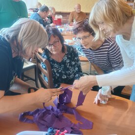 V sobotu sme pokračovali poznávaním. Navštívili sme vzácnu perlu horehronia - ľupčiansky hrad, kochali sme sa jeho krásou a širokými, ďalekými výhľadmi. Prešli sme krásnym parkom brusnianskych kúpeľov, ochutnali liečivé, pramenité vody. Sobotné popoludnie si každý užil podľa svojej preferencie. Kým niektorí navštívili krásne turistické miesta v okolí Brusna, iní využili liečebné kúpeľné procedúry, ostatní sme sa zapojili do učenia. Milé dámy z dobrovoľníckej spoločnosti Nova Akropolis, o.z. nás vtiahli do aktívnych, mimoriadne príjemných činností . Z recyklovaných materiálov sme sa učili vyrábať predmety pre zvieratká a tešili sme sa, ako ich podarujeme našim štvornohým miláčikom, alebo zvieratkám v útulku. Kým jedni háčkovali, iní šili, ďalší sa pasovali s tkaním. Prekvapením bolo, ako tvorivé dielne „chytili“ našich chlapov. Spontánne a naozaj dobrovoľne😊. Pre zúčastnené dámy boli silnou konkurenciou. Niektorí držali v rukách ihlu alebo háčik prvýkrát, ale snaha a záujem priniesli jedinečné výsledky. Z vyrobených hračiek, koberčekov, podložiek a iných predmetov sme sa tešili hneď dvakrát – pretože sme sa naučili niečo nové, čo vyzeralo tak zložito a zrazu sme to zvládli, ...ale aj pre pocit, že urobíme radosť našim štvornohým priateľom. Okrem toho súbežne s tvorením prebiehala aj výuka kruhových tancov, tradičných v jednotlivých európskych krajinách, ktoré nám priniesli veľkú zábavu, radosť z pohybu, ladnosti a príjemnej pohody. Niektorí šikovníci stihli ručné práce a popri tom aj jeden – dva tance. Bolo to úžasné popoludnie. Večer sme zakončili spoločným posedením a kto chcel, mohol si zatancovať v lobby kúpeľného domu Poľana, kde obidva večery hrala živá hudba.